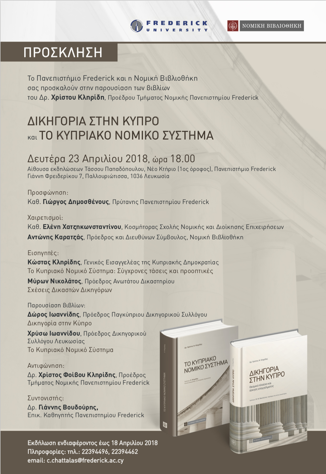 ΠΑΡΟΥΣΙΑΣΗ ΒΙΒΛΙΩΝ: ΔΙΚΗΓΟΡΙΑ ΣΤΗΝ ΚΥΠΡΟ & ΤΟ ΚΥΠΡΙΑΚΟ ΝΟΜΙΚΟ ΣΥΣΤΗΜΑ, του Δρ. Χρίστου Κληρίδη