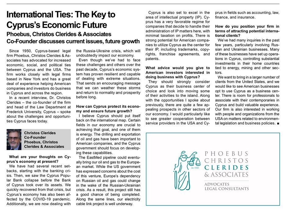 THE NEW YORK TIMES: CYPRUS'S ECONOMIC FUTURE BY DR. CLERIDES